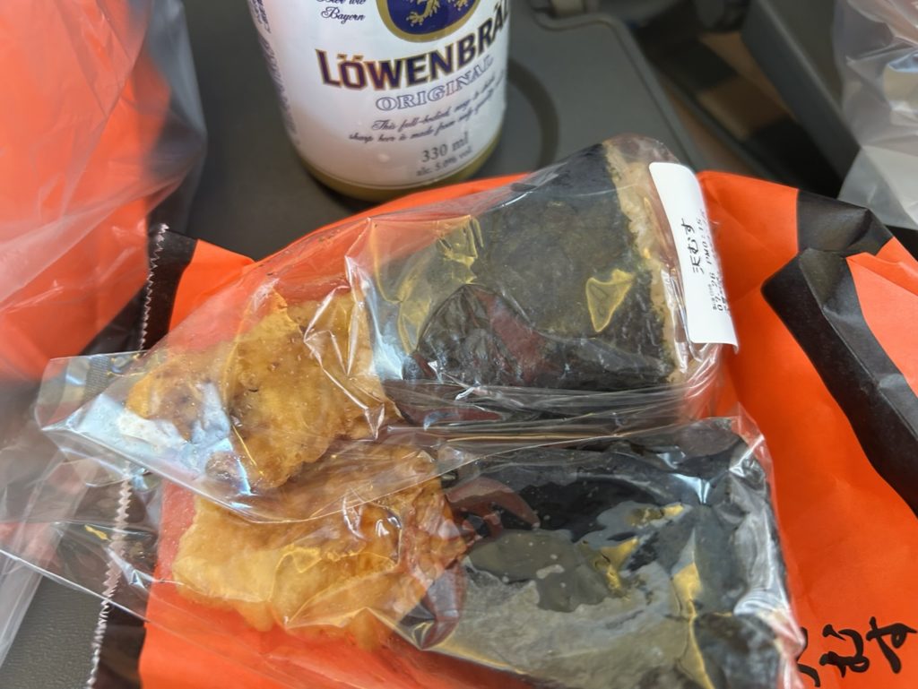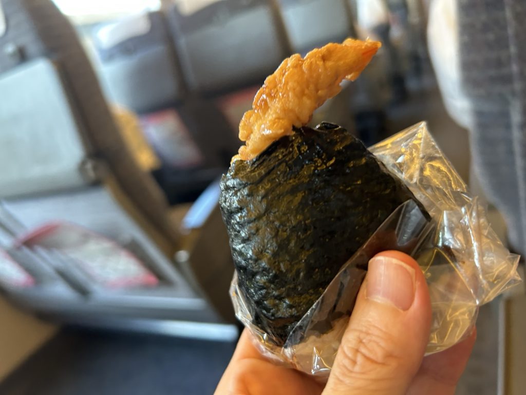 さっき通りがかった「まきの」で天むすが売っていたので海老ととり天をチョイス。