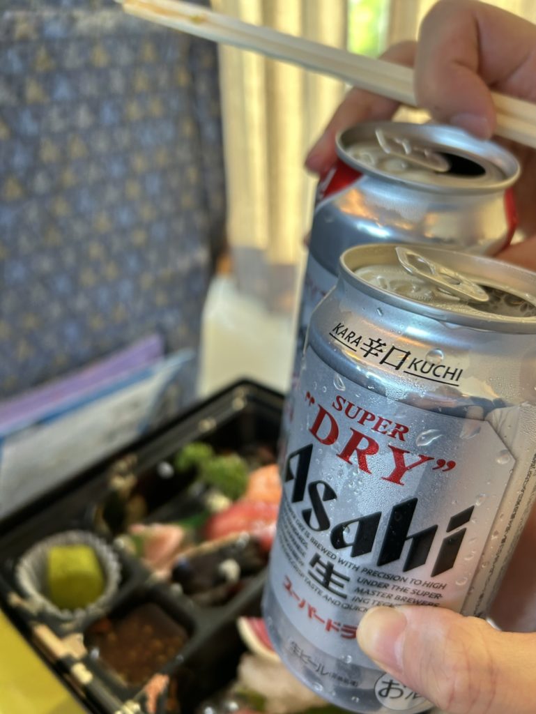 せっかくなので旅行気分で行きの電車で早めの晩御飯にする。