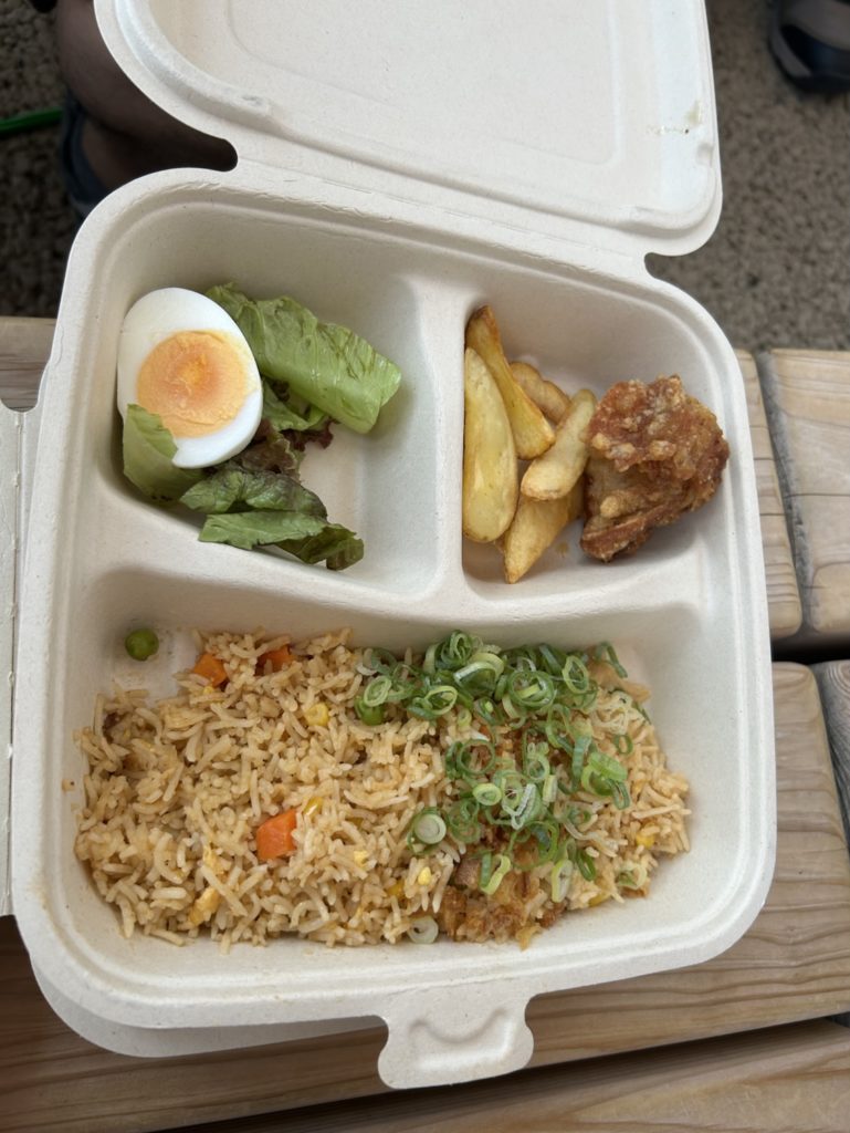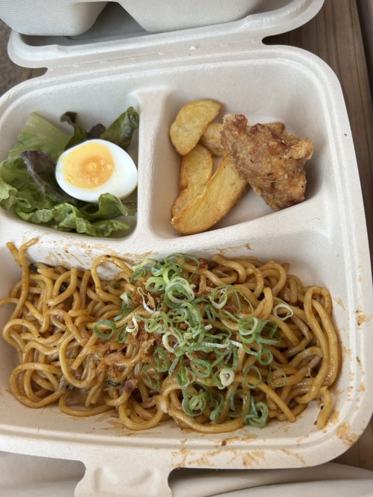 セルビア料理を堪能し、宴パビリオンの塩引鮭のおにぎりを食べて、マレーシアのミーゴレンとナシゴレンをシェアして食べたところでお腹いっぱい。