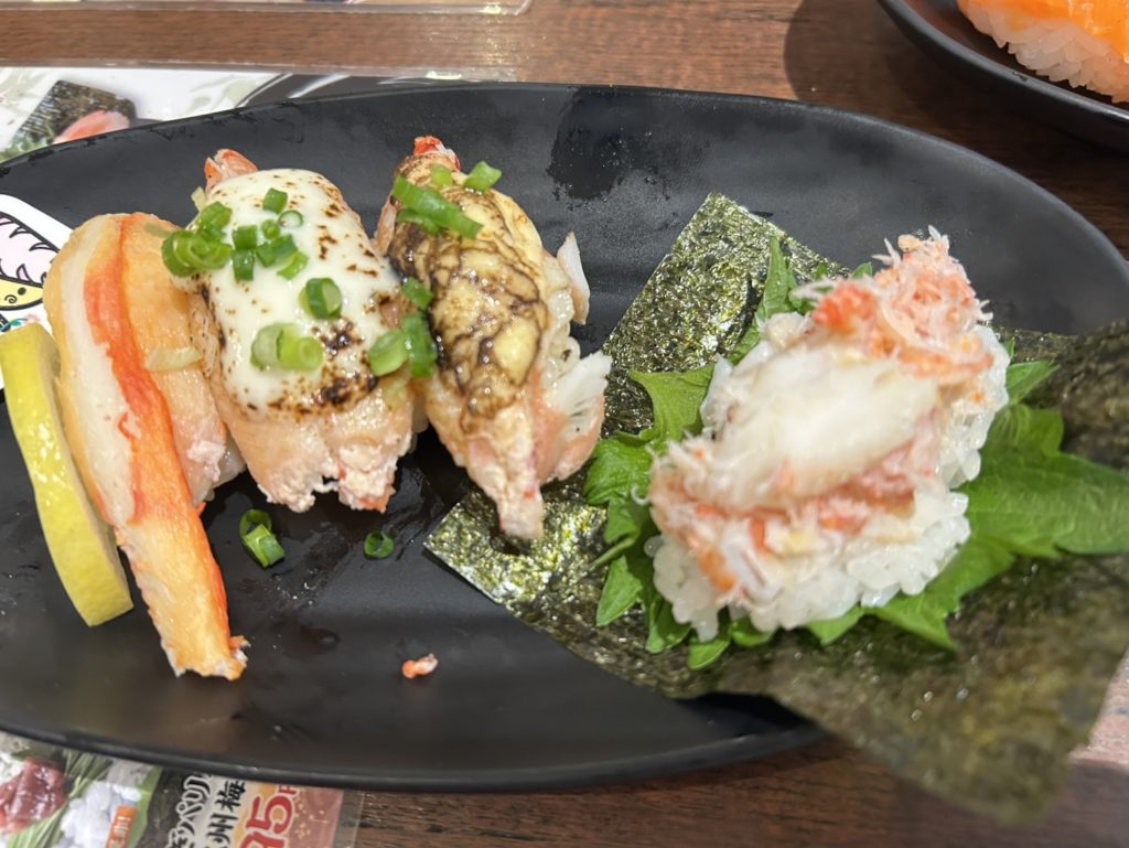 それぞれ、「本日のおすすめ」と「寿司屋のカニ食べづくし」を頼んだ🩷